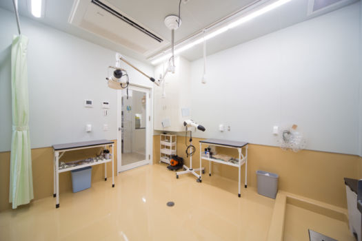 診察室3室に処置室、レントゲン室、手術室、犬猫別の入院室、隔離室、従来からされていたトリミングが、トリミング室は別棟となっていましたが、病院併設しました。